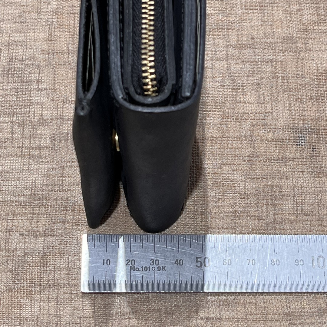 カードポケットは小銭入れの前後に2ヶ所。フリーポケットにもカードが収納できるので、実際に入れられるカード枚数は8枚程度かと思われます。小銭入れはL字ファスナーでマチも付いているので、とても大きく開いて中が見やすいです。