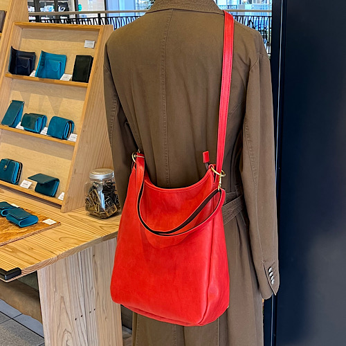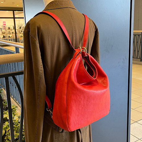 こちら『3way SD 栃木レザーver.』です。施設店舗にて大変好評いただいております『3way SD』を希少性の高い高級国産牛革である栃木レザー レッドの色味を贅沢に使用したアイテムとなっております。