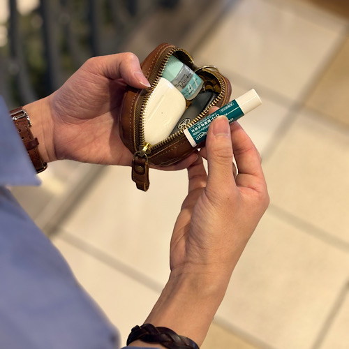 私は中にスマートキーやワイヤレスイヤホン、リップ、目薬などを入れて持ち歩いています。