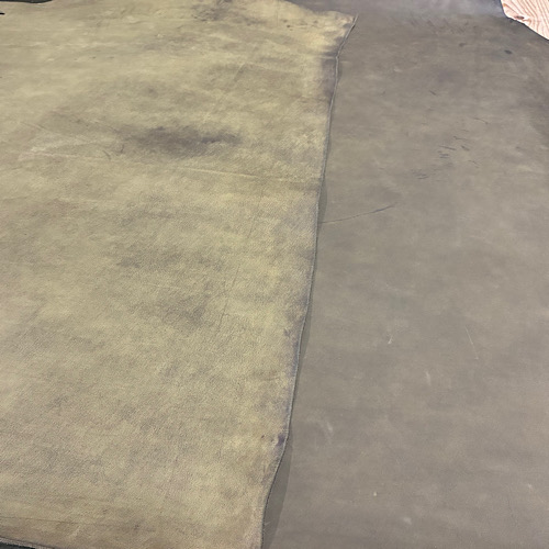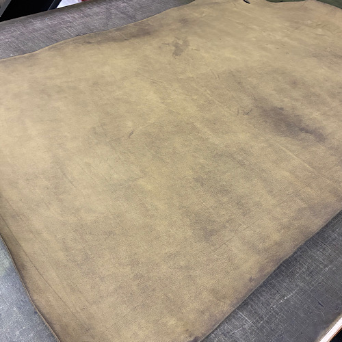今回入荷してきた革は本店、オンラインストアにて取り扱いをしていますオイルドバフレザーです。