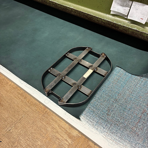 入荷のあった革で早速オーダーアイテムを裁断しております。