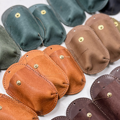 こちらはオンラインで1番の人気を誇るスマートキーケース。一度にたくさん製作することが多く、いつも作業台の上がカラフルに!
