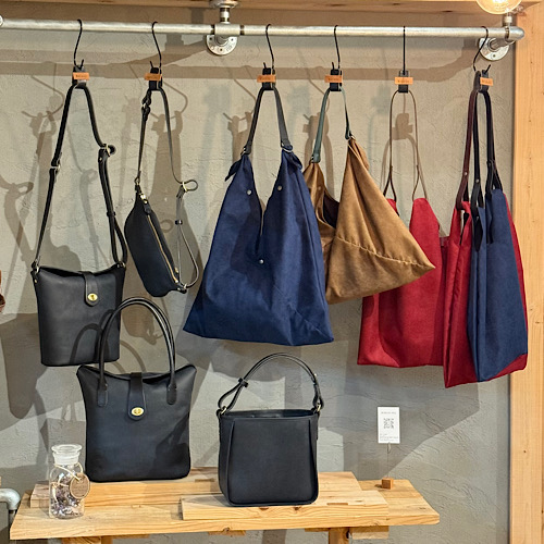 そして本店では新作が店頭に並んでおります。生地を使った軽いお鞄が登場しています!夏に向けた軽やかなお鞄をお探しの方はぜひお試しください。