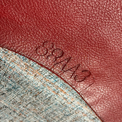 こちらは刻印の試し押し。革の種類によって厚みや含まれるオイルの量が違うので、一度ハギレに試して慎重に調整を行います。