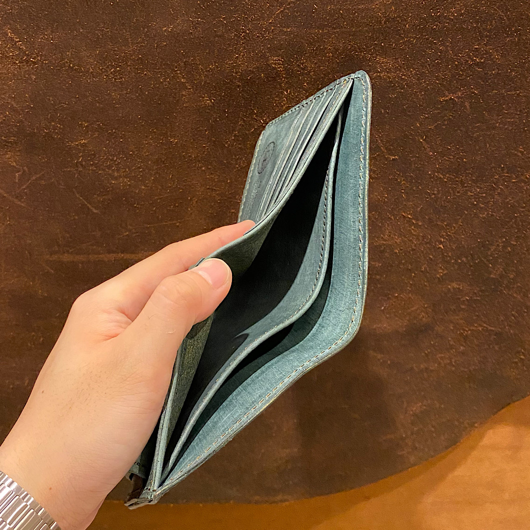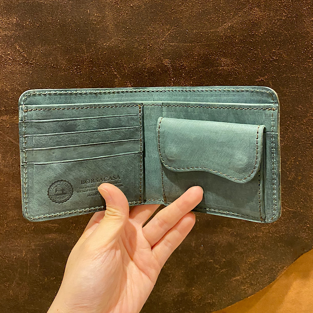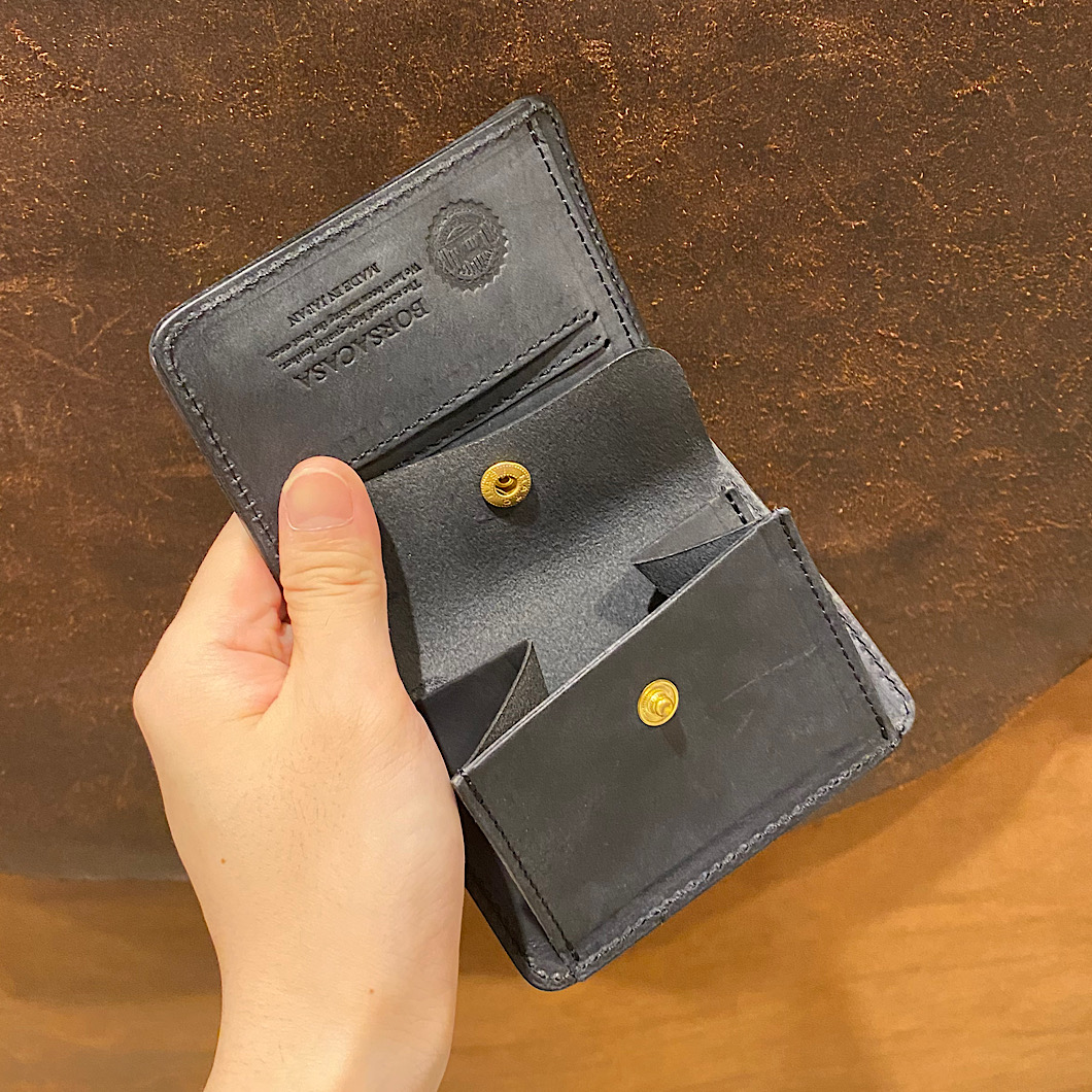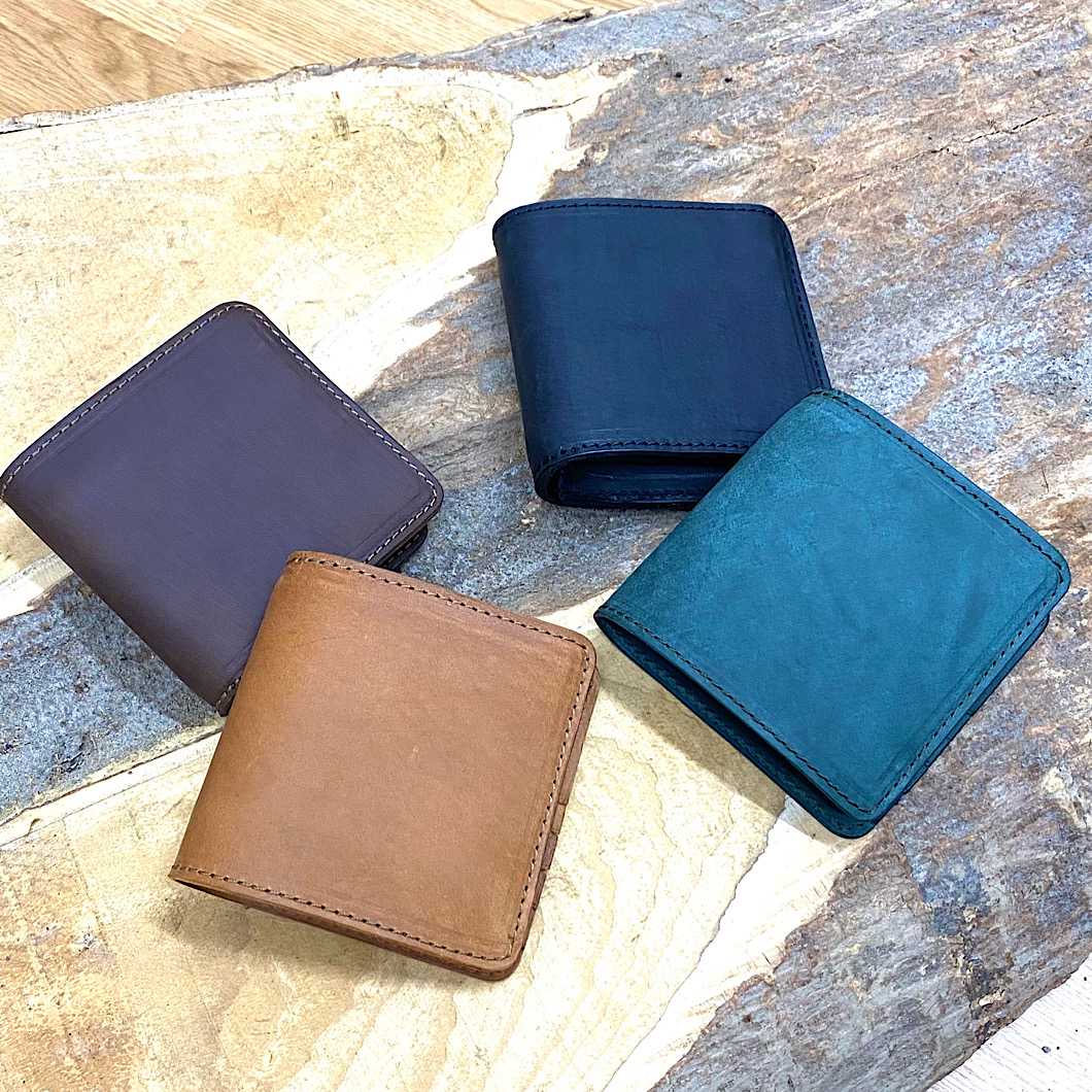 さて今回は以前より紹介させていただいております商業施設店舗にて展開しているアイテムの紹介です。三つ折り財布を2型の紹介です☺️
