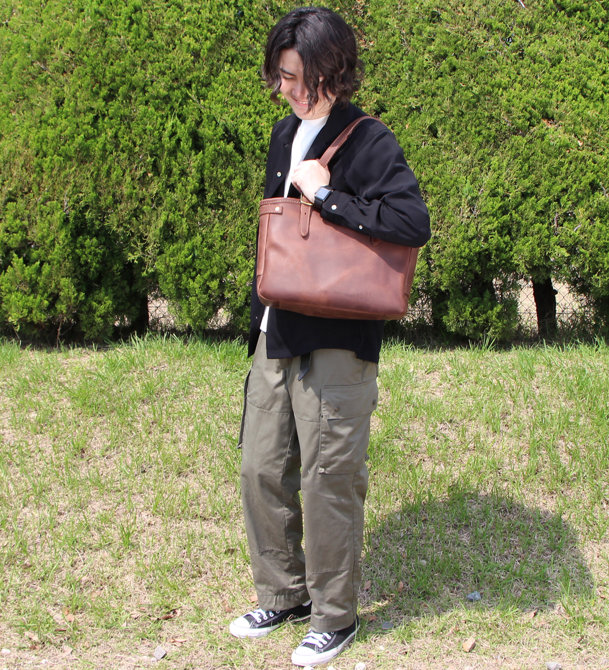 デイリーに使いやすいトートバッグ。コンパクトなサイズ感ですがA4サイズも収納可能。内装には3ヶ所のポケットがあり、鞄の中をすっきりと整理できます。また、前ポケットにはスマートフォンもすっぽり入れられますので機能性も優れています。ハンドルは長さ調節可能で、お好みのスタイルに合わせて男性女性問わずお持ちいただけます。