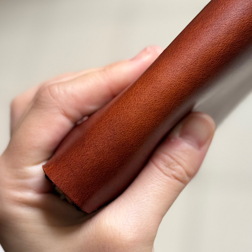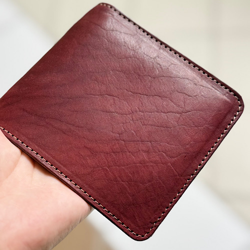アローロの革が届き、その日のうちに仕立て上げました。深みのあるアローロの間からのぞくグローブレザーのグリーンが、鮮やかで目を引きます。