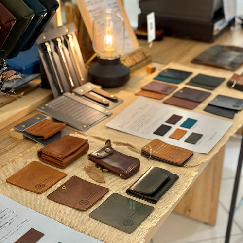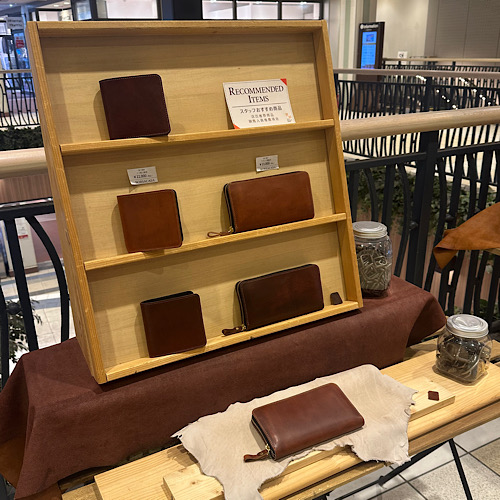 現在、長島店は財布小物共に少し在庫の少ない状況であります。日々製作し完成出来次第の入荷をしておりますので、楽しみにご来店いただけたらと思います。
