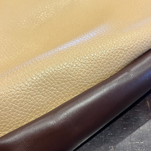 こちらは今回入荷した革ではありませんが、ボルサカーサの定番レザーのオイルドバフです。昔からご愛用いただいてるかたには根強い人気の革となります。