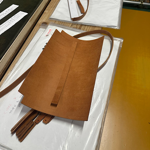 ここから裁断したパーツの厚みを調整し、ボルサカーサのロゴを刻印、ミシンをかけたり様々な工程を経て、完成となります。