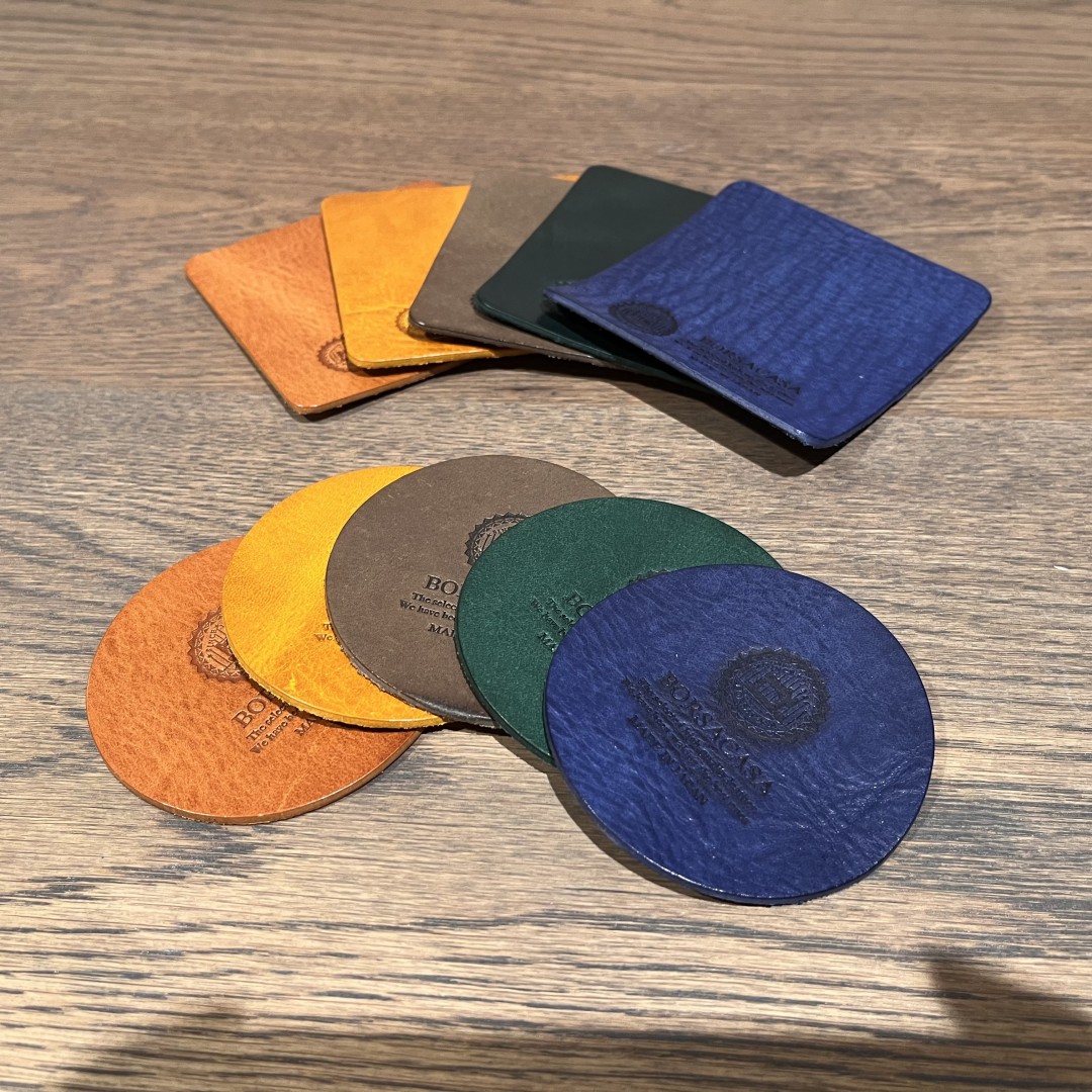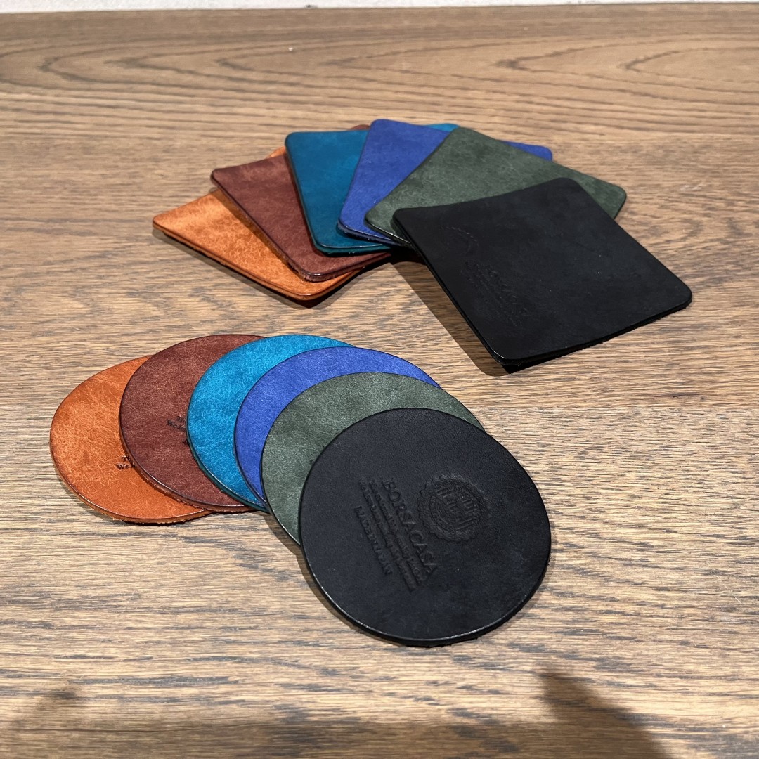 ミッスーリレザーを使用したコースター!先ほどの物と同様の使い方ができます!お好みの革を選んで経年変化を楽しんでください!