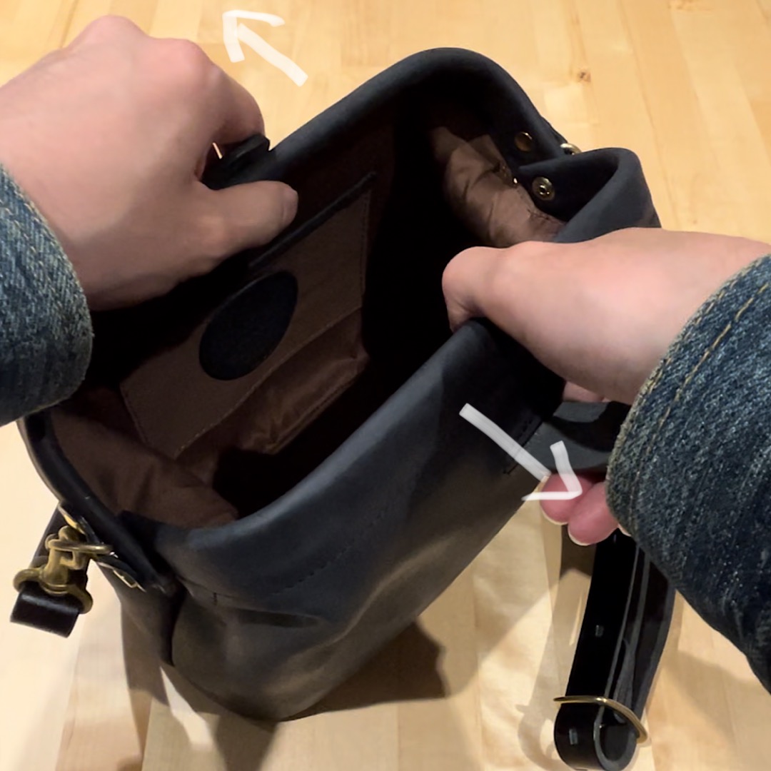 先ほどの物よりサイズの大きなポーチです!Mは化粧直しの道具を入れたり小さ目のモバイルバッテリーやコードなんかを入れても良さそうです!