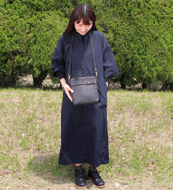 前面にアクセントとなるベルトが付いたお洒落なバッグ。サイズ感もバランスよく必要最低限の荷物が入るショルダーバッグ。ショルダー紐の作りにもこだわり、他にはないショルダー紐のデザインになっています。