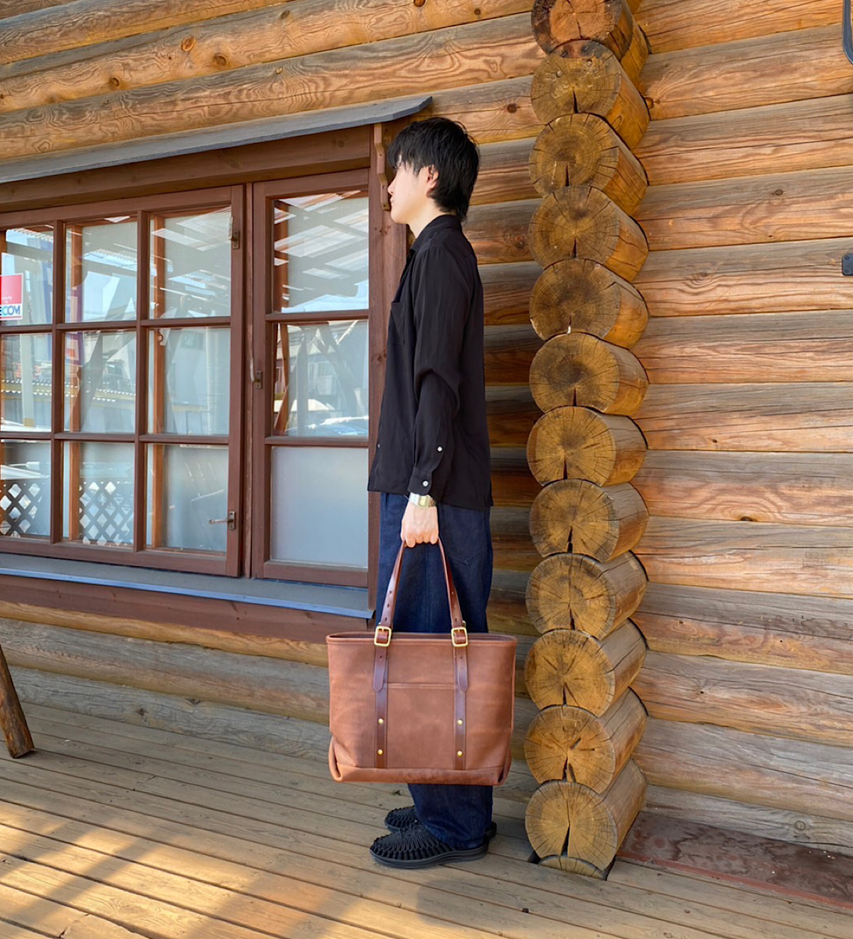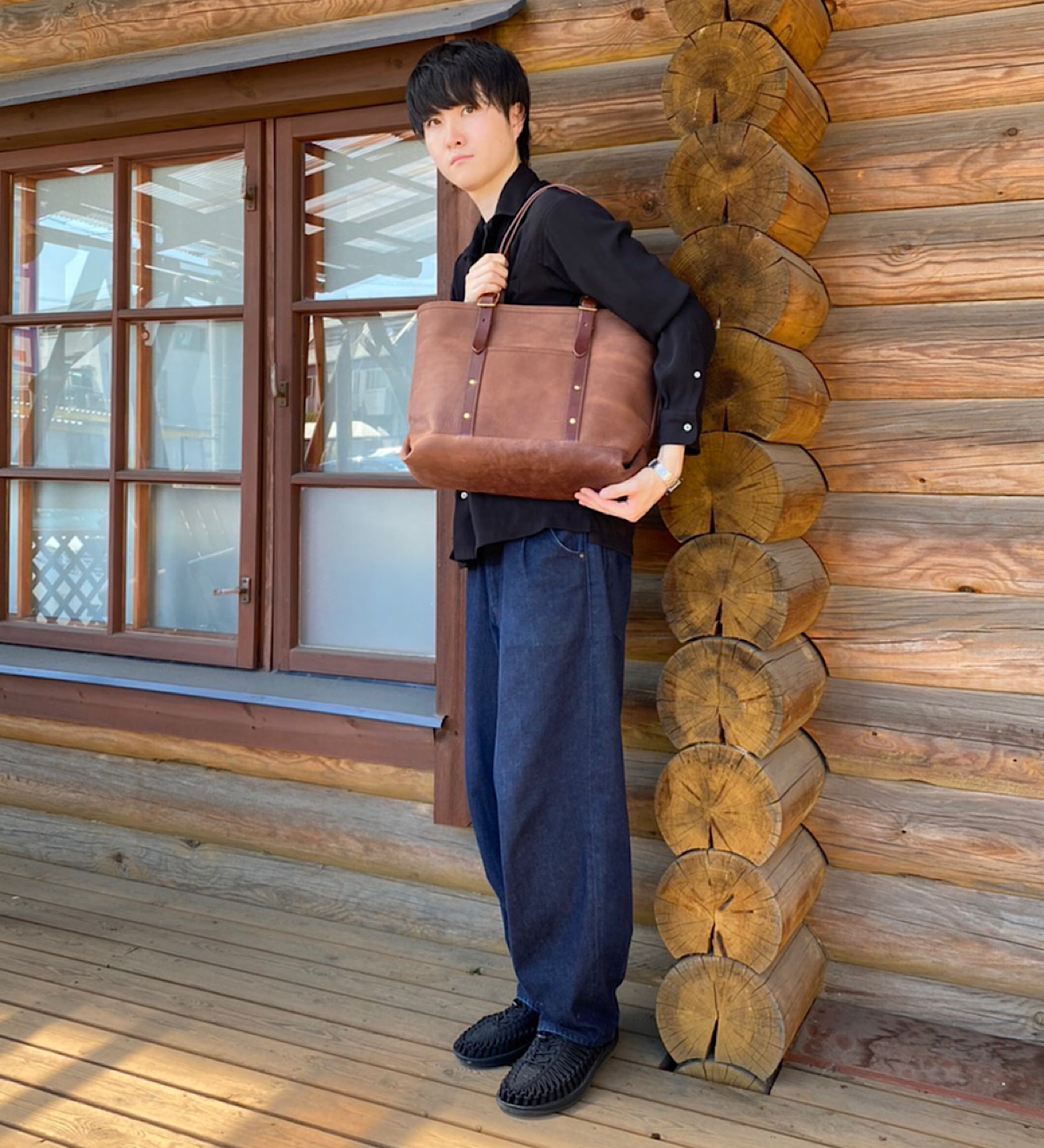 本体胴や底部分に贅沢にレザーを使用したトートバッグ。持ち手や本体ベルト部分に栃木レザーを使用することでアクセントとなっております。A4サイズのファイルやPCケースなどがすっぽり入りビジネスシーンでも活躍します。大容量ながらも革の雰囲気を存分にお楽しみいただけるトートバッグに仕上がりました。