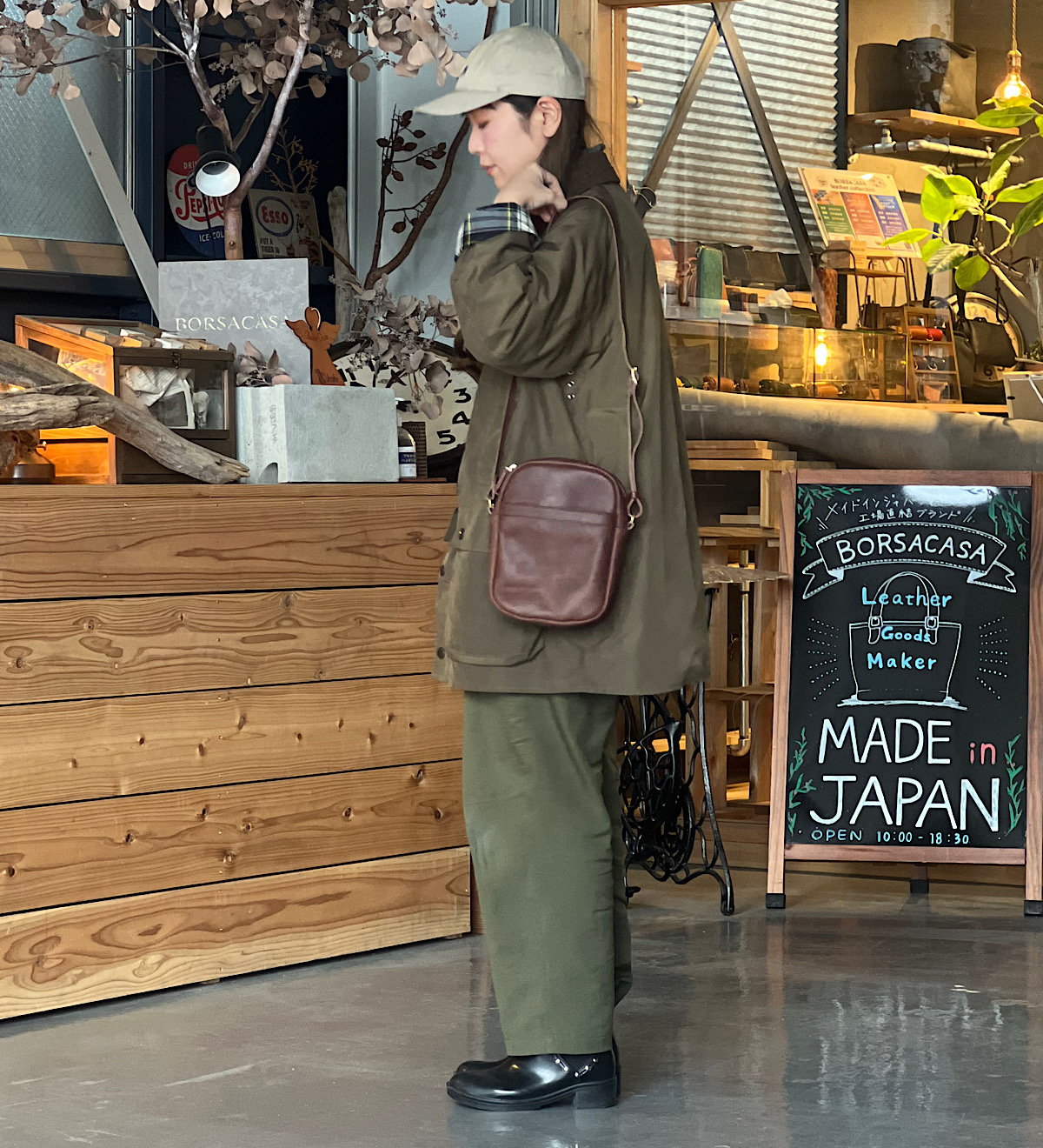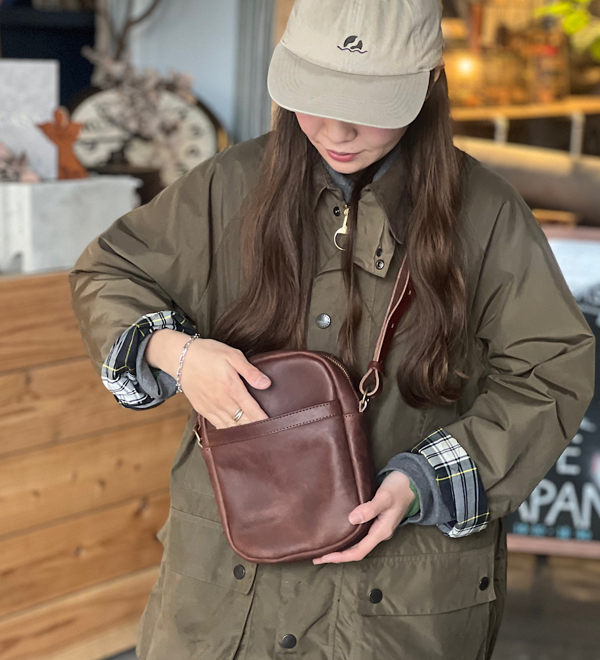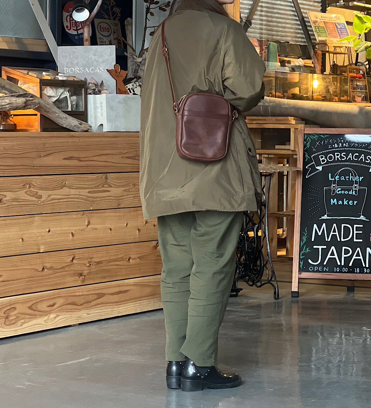 食パンのようなフォルムが愛嬌たっぷりのショルダーバッグ。容量は500㎖のペットボトルが入る実用的なサイズ感。フロントにはあおりポケットが付いておりますので、スマホや定期入れなどをサクッと入れておくのにおすすめです。ブルチャットのカラーはどんなお洋服にも合わせやすく、年中使いやすいのが魅力的です。